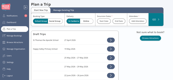 - Locate the Trip: Go to the Plan a Trip tab in the left navigation column, then find the Draft Trip you want to submit.